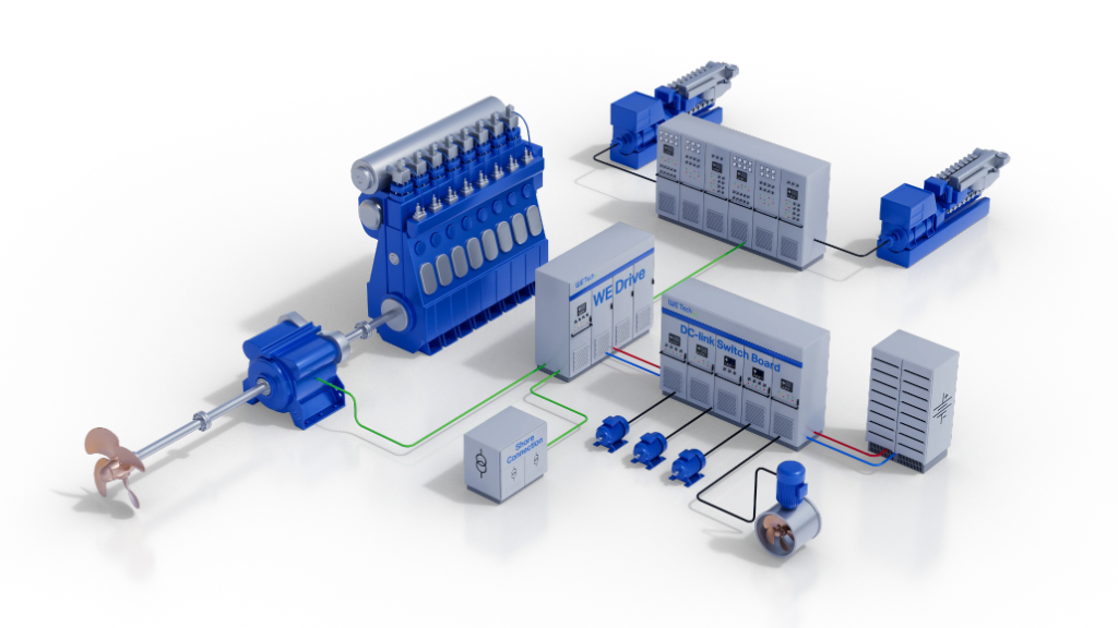 Upgrade your vessel’s performance and sustainability with WE Tech’s proven Variable Speed Shaft Generator as a Retrofit Solution. By utilizing the main engine to produce electrical power, this innovative system transforms how ships manage onboard energy. The retrofit not only cuts fuel consumption and emissions but also reduces noise, vibration, and maintenance costs by minimizing reliance on auxiliary generators.
